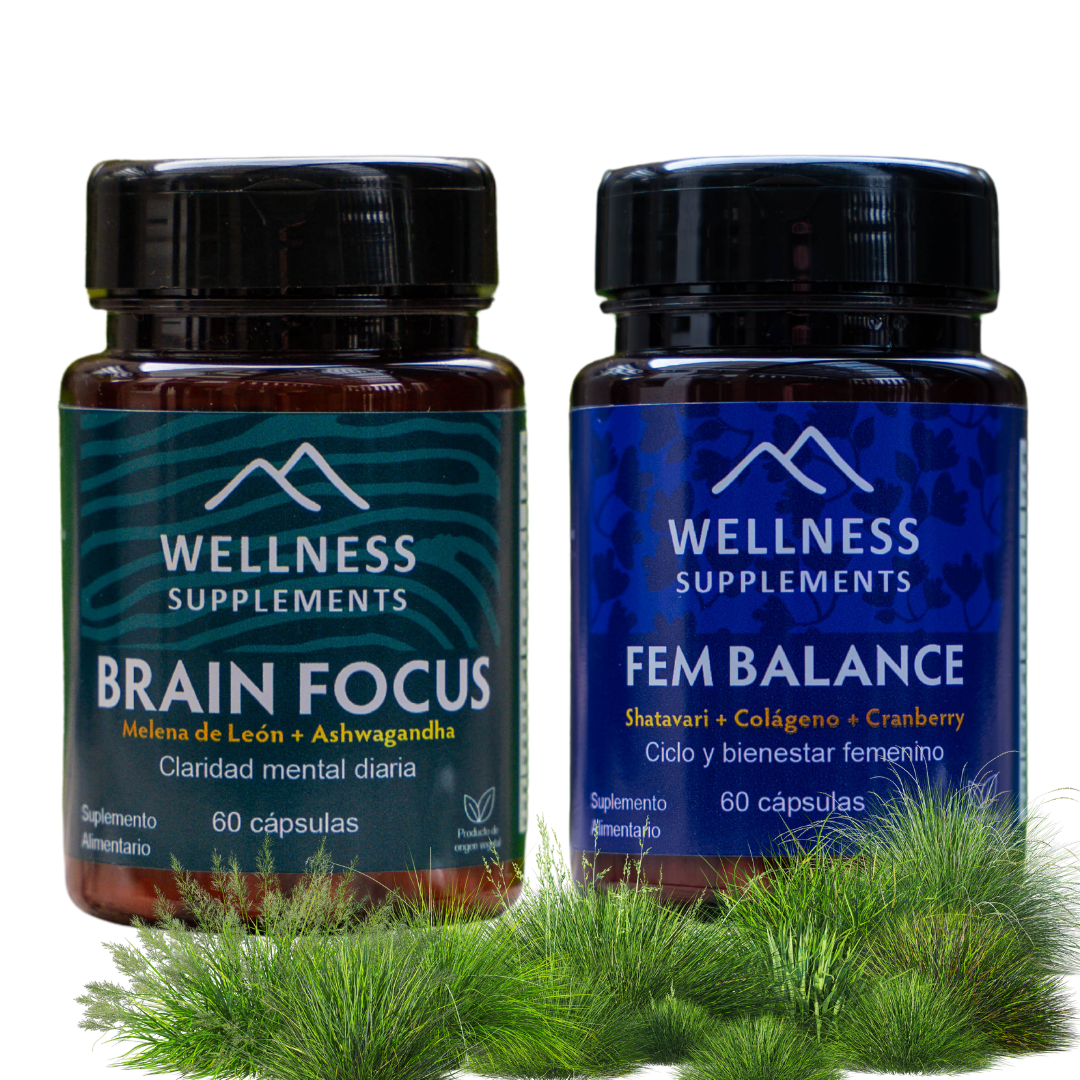 El Pack Enfoque Femenino está diseñado para acompañarte en lo que más importa: claridad mental, enfoque sostenido y equilibrio hormonal, sin sacrificar tu bienestar. Brain Focus despierta tu mente; Fem Balance armoniza tu ciclo. Fórmulas limpias, efectivas y pensadas para mujeres que no se detienen.